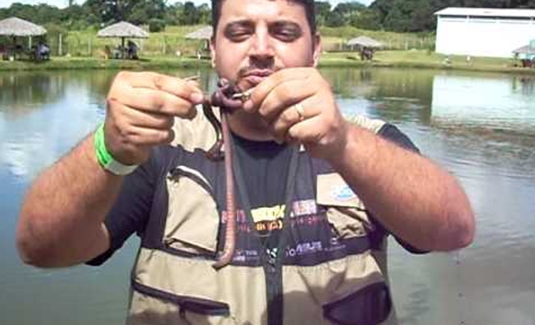 Pescador utilizando o minhocuçu na pesca